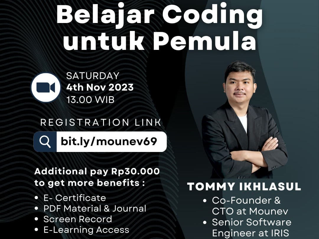 Melihat kondisi ini, Mounev Academy sebagai platform event organizer diharapkan dapat memberikan fasilitas pelatihan dengan akses yang dapat dijangkau oleh semua kalangan. Dengan adanya webinar ini Mounev Academy diharapkan dapat memberikan semua orang pengetahuan dan kemampuan mengenai coding untuk pemula, serta dapat mengevaluasi sejauh mana webinar ini memberikan dampak bagi pesertanya.